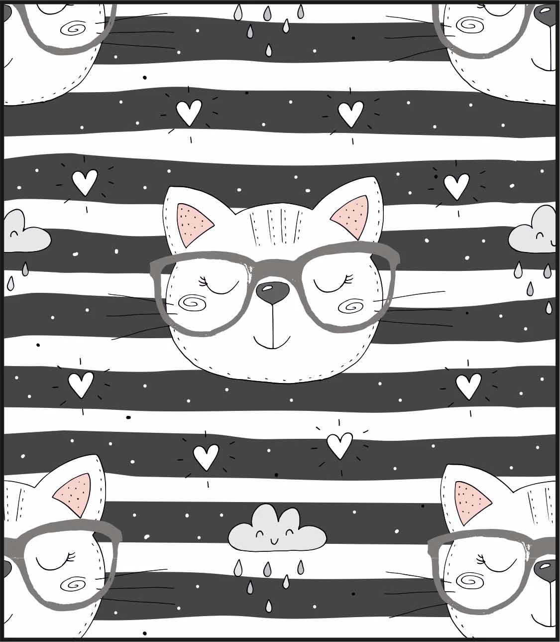 Rysunkowa, zabawna tapeta ze śpiącymi kotkami w okularach i sympatycznymi chmurkami.