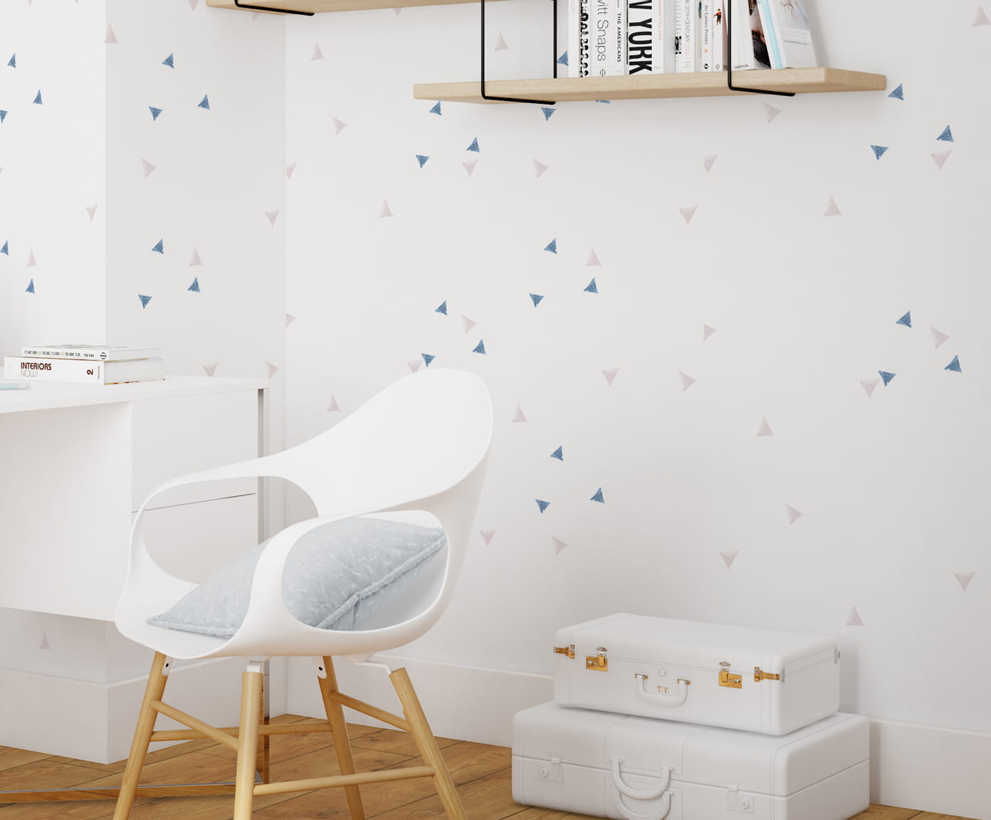 Tapeta dziecięca Crazy Triangles jest bardzo delikatna, nie narzucająca się lecz oddająca ciepło i miękkość w aranżacji przestrzeni.