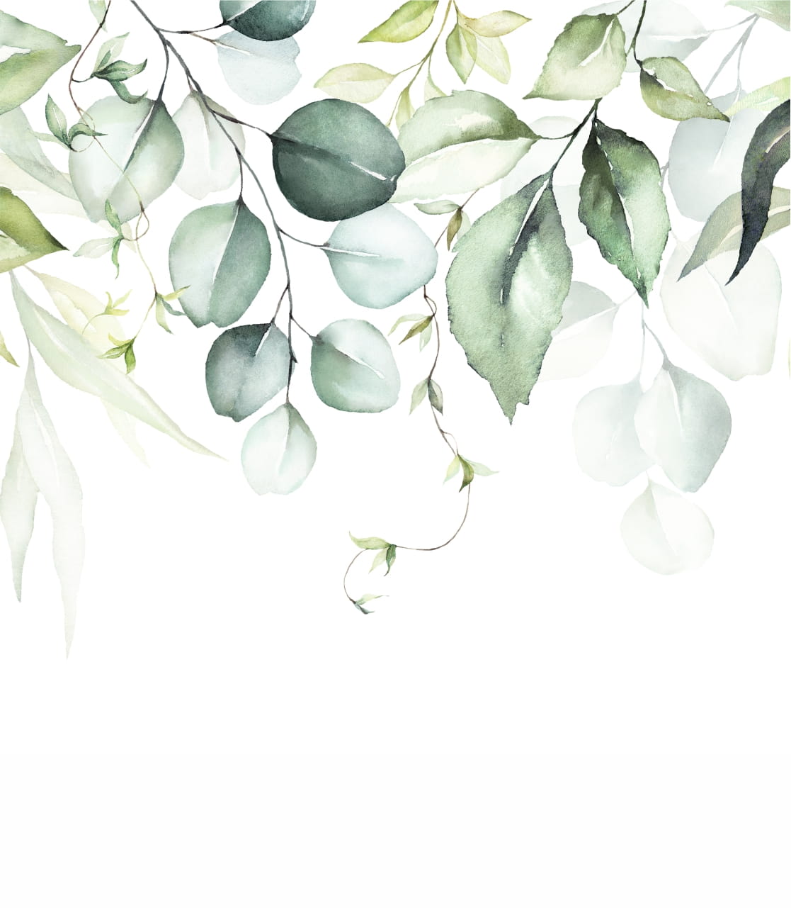 Delikatne, zielone liście, starannie odwzorowane na białym tle, tworzą efekt lekkości i harmonii.