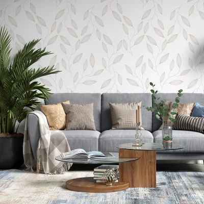 Chcesz dodać do swojego wnętrza trochę subtelności? Tapeta z geometrycznym wzorem liści pięknie skomponuje się z każdym wystrojem!