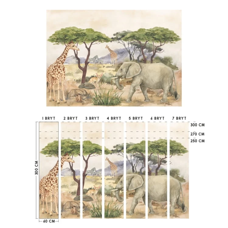 Tapeta Safari to wielowymiarowa aranżacja przedstawiająca bohaterów z kolekcji Safari w ich naturalnym środowisku.