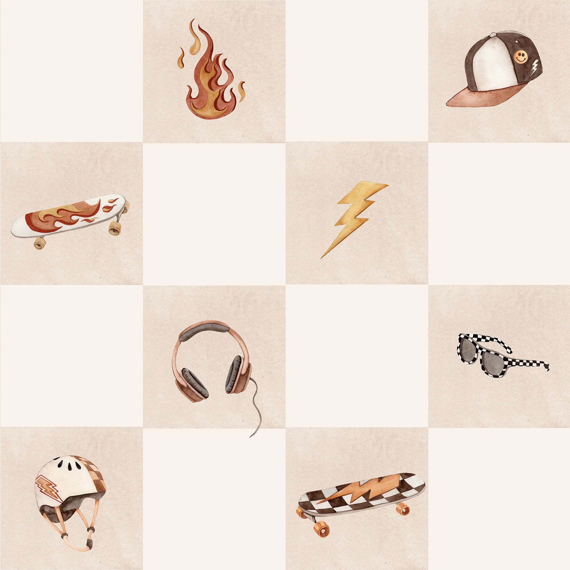 Tapeta Tapeta skate dla dzieci - szachownica beżowa