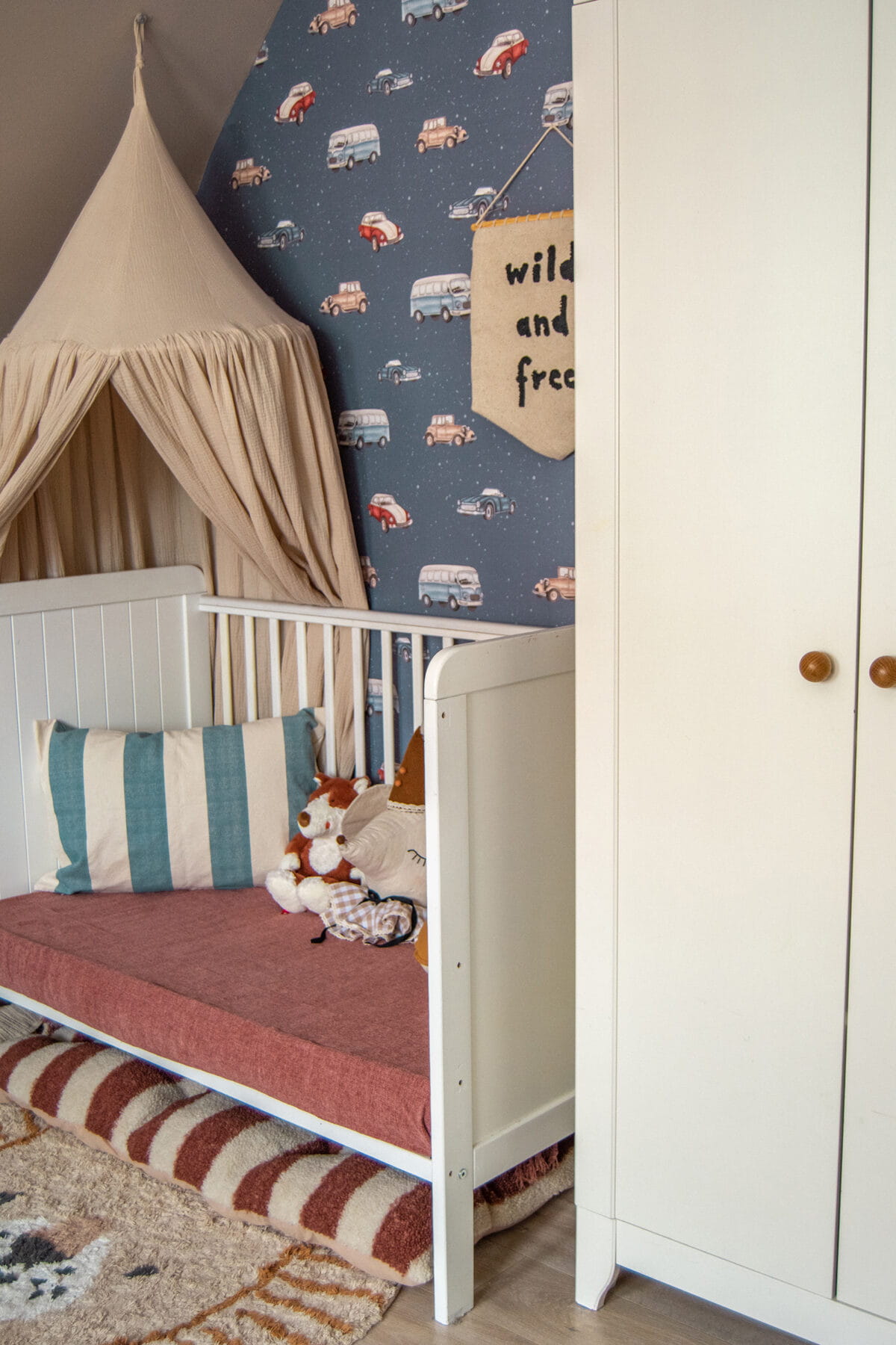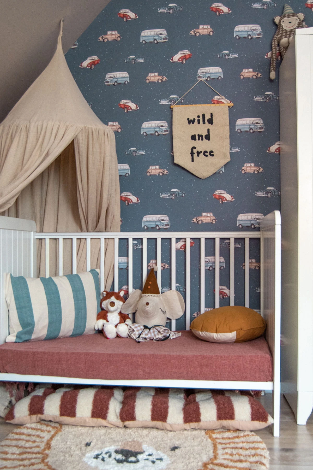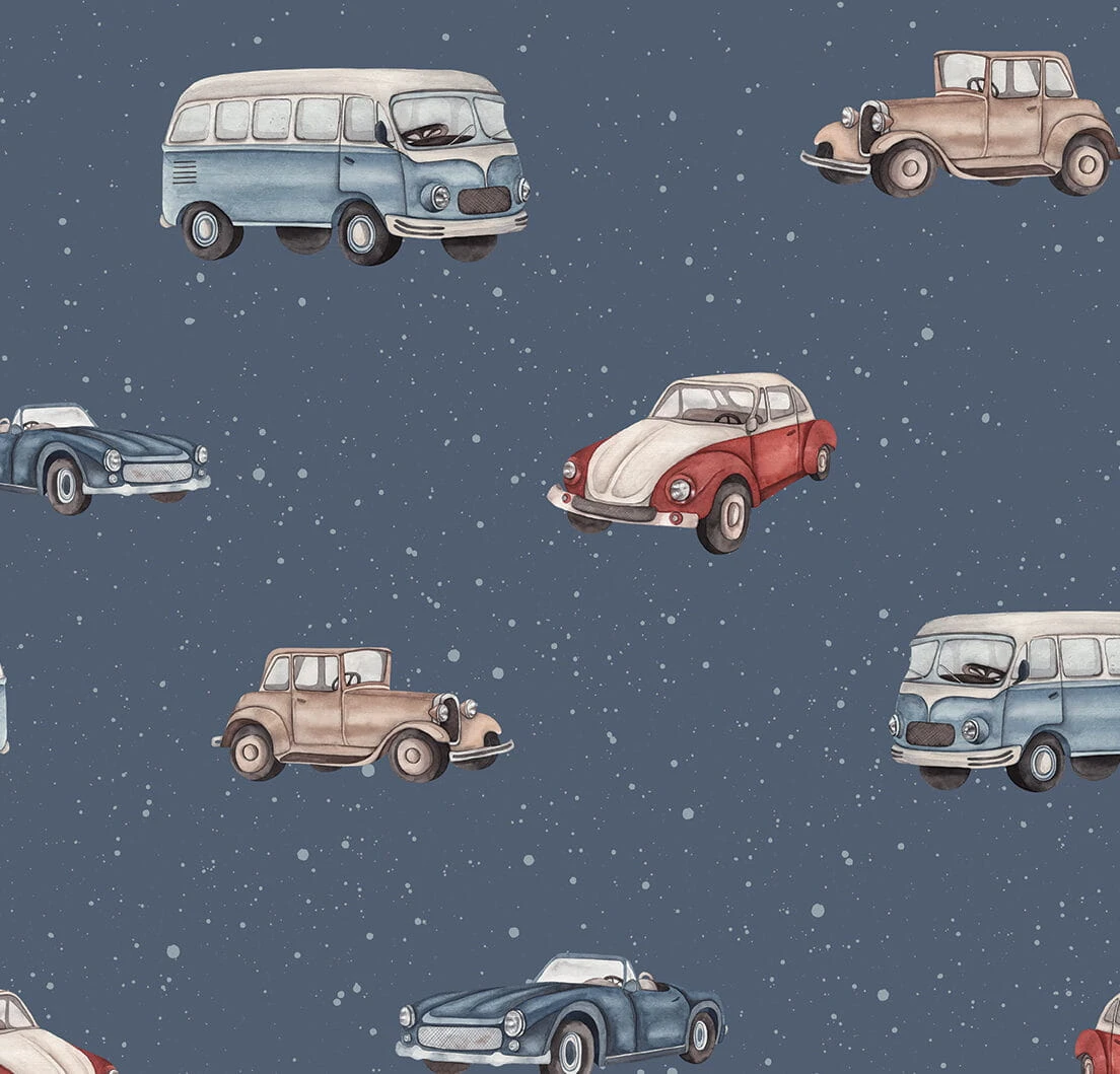 Tapeta w auta to ponadczasowy wzór do pokoju chłopca. Będzie dobrze wyglądać na całej ścianie lub, gdy zestawisz ją z lamperią lub boazerią angielską. Tapeta z samochodami dostępna jest w trzech wariantach kolorystycznych.