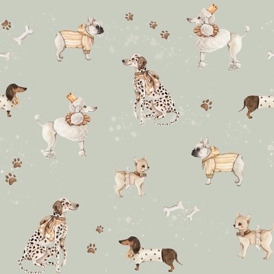 Tapeta w pieski, I love dogs - miętowa