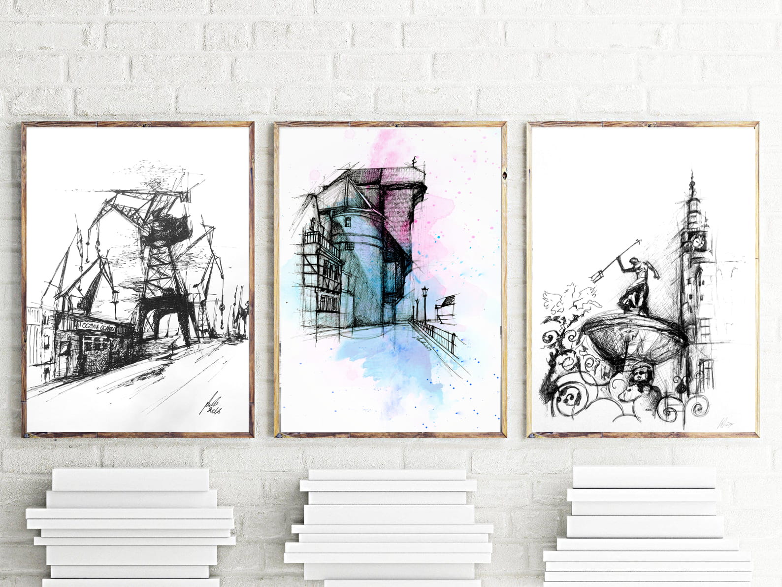 Piękne nowoczesne grafiki przedstawiające Gdańsk.