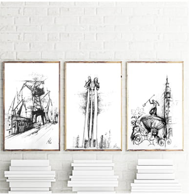 Piękne nowoczesne grafiki przedstawiające Gdańsk.