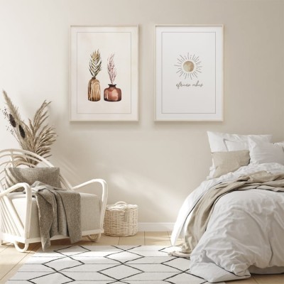 Proste plakaty, które przedstawiają liście jako kwiaty w dzbankach oraz plakat z napisem. Będzie to piękna samodzielna dekoracja lub też uzupełnienie do naklejek lub plakatów z kolekcji Safari.